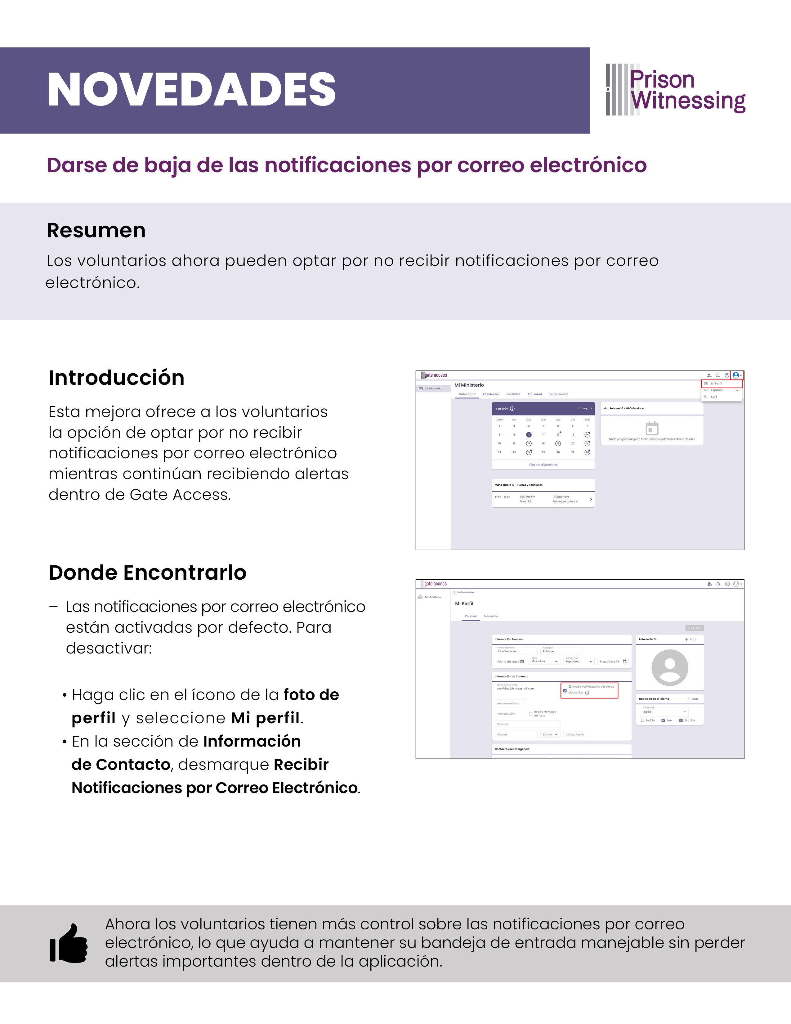 Novedades: Darse de baja de las notificaciones por correo electrónico