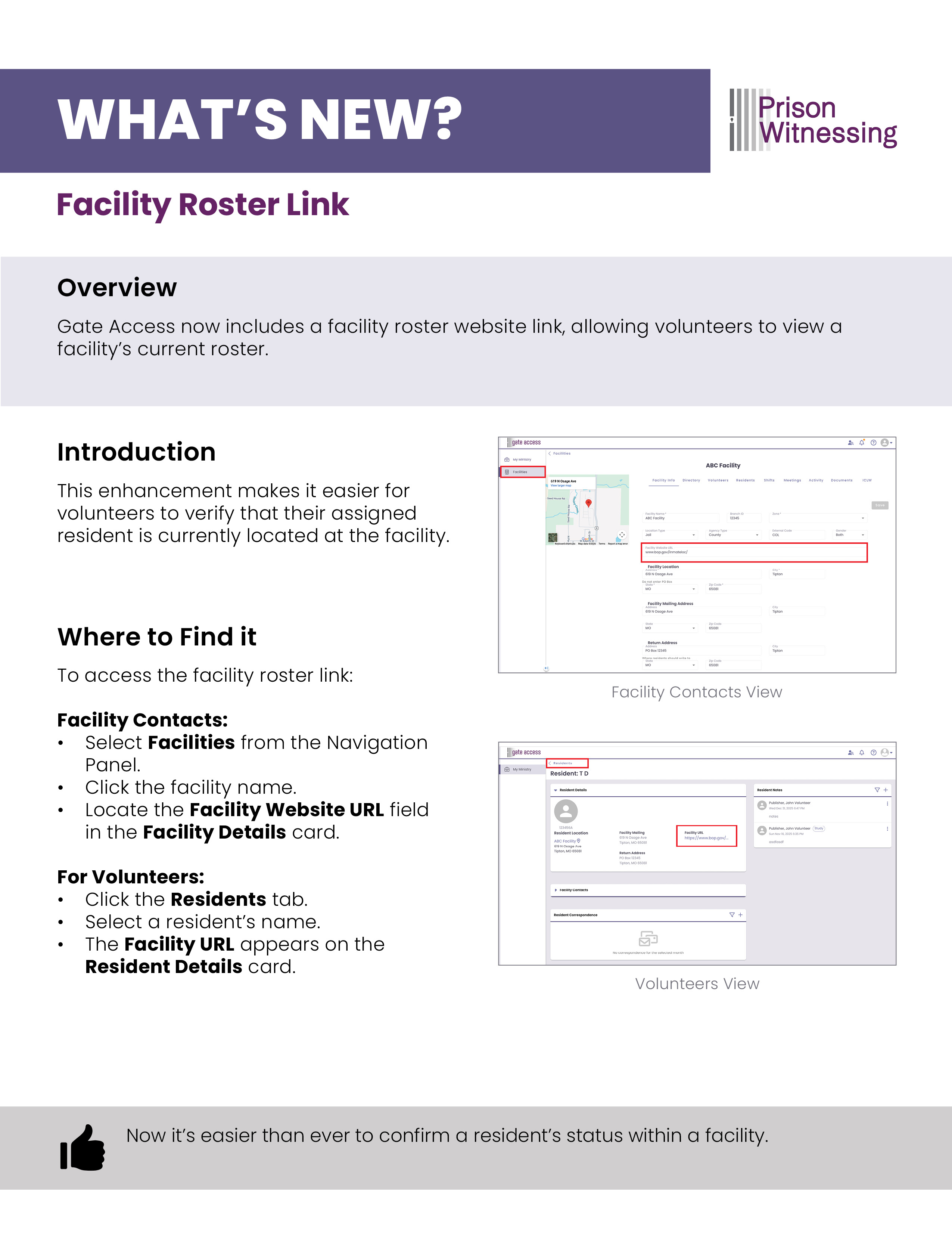 What's New? - Facility Roster Link